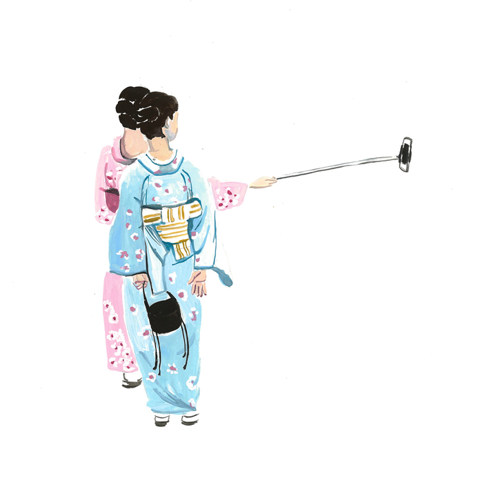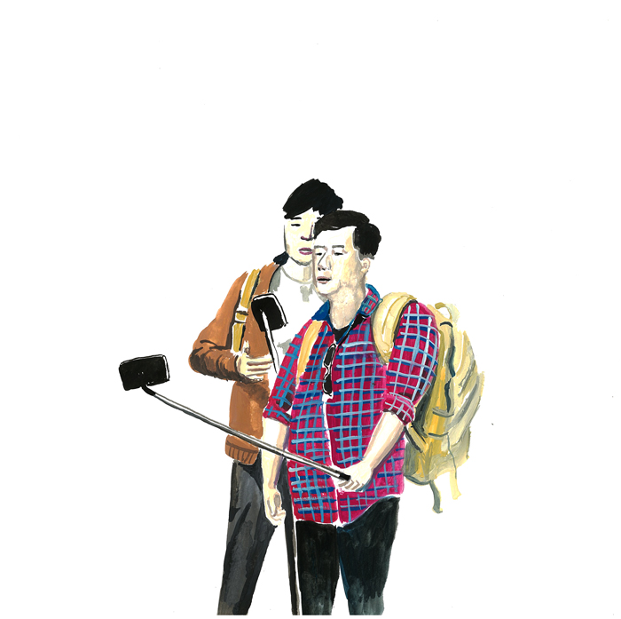 A series I created after a visit to Japan. At the time selfie-sticks were having their moment. I loved catching people absorbed in trying to get the perfect shot with their ridiculous stick things.